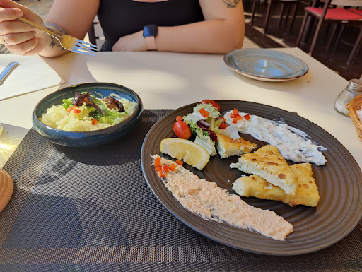 Grata sorpresa - Llegamos a este restaurante bastante tarde tras haber estado buscando otros donde no nos servían ya. La camarera fue súper maja, nos dijo que podíamos estar comiendo mientras ellas también descansaban sin ningún problema. La comida muy muy rica. Típica comida griega a un precio muy muy muy asequible. Recomendable 100%